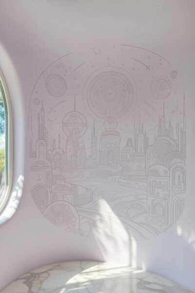 Aura of a space flying Aura of a space upscale Space flowers design playroom Utopian Cities Wall Art | Ai Ideas Rythmic drawings Aura of a space frequencies Sternblume Beyond Utopia Cosmic arc Aura of a space streetart and lights