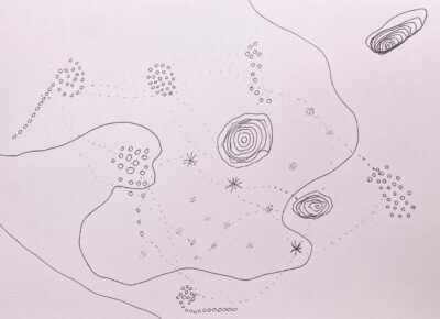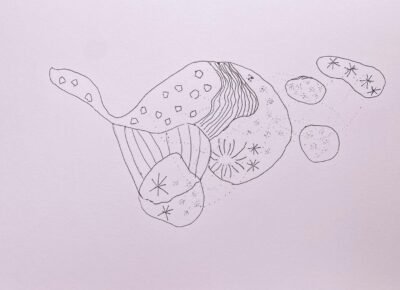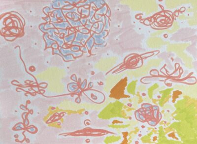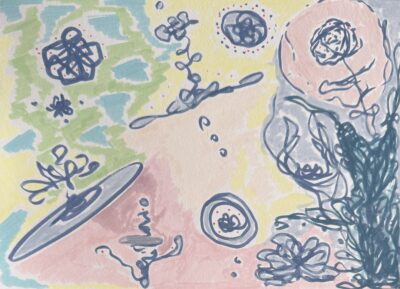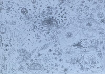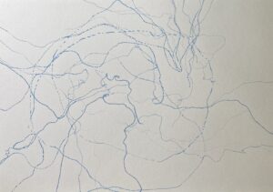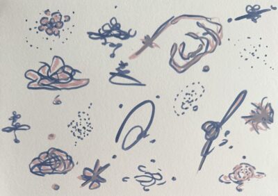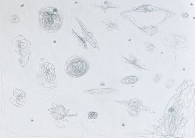 Cosmic arc drawings | 2025 Marker on paper 14,8x 21 cm, 10,5x 14,8 cm Rhythmic | 2021 Marker on paper, watersoluble oil on paper 29,7×42 cm, 14,8x 21 cm, 42x 59,4 cm Pen on paper, marker on paper 14,8x 21 cm